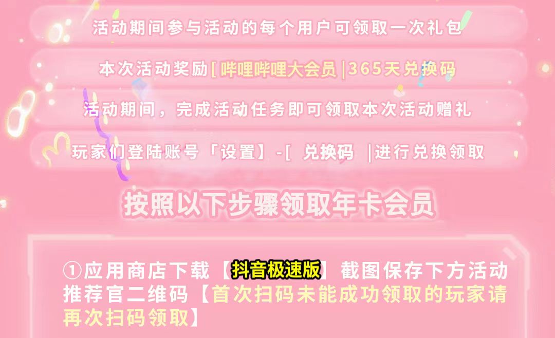 领取失败:请完成以下任务再领取【礼包内含:年度大会员*365天兑换码】